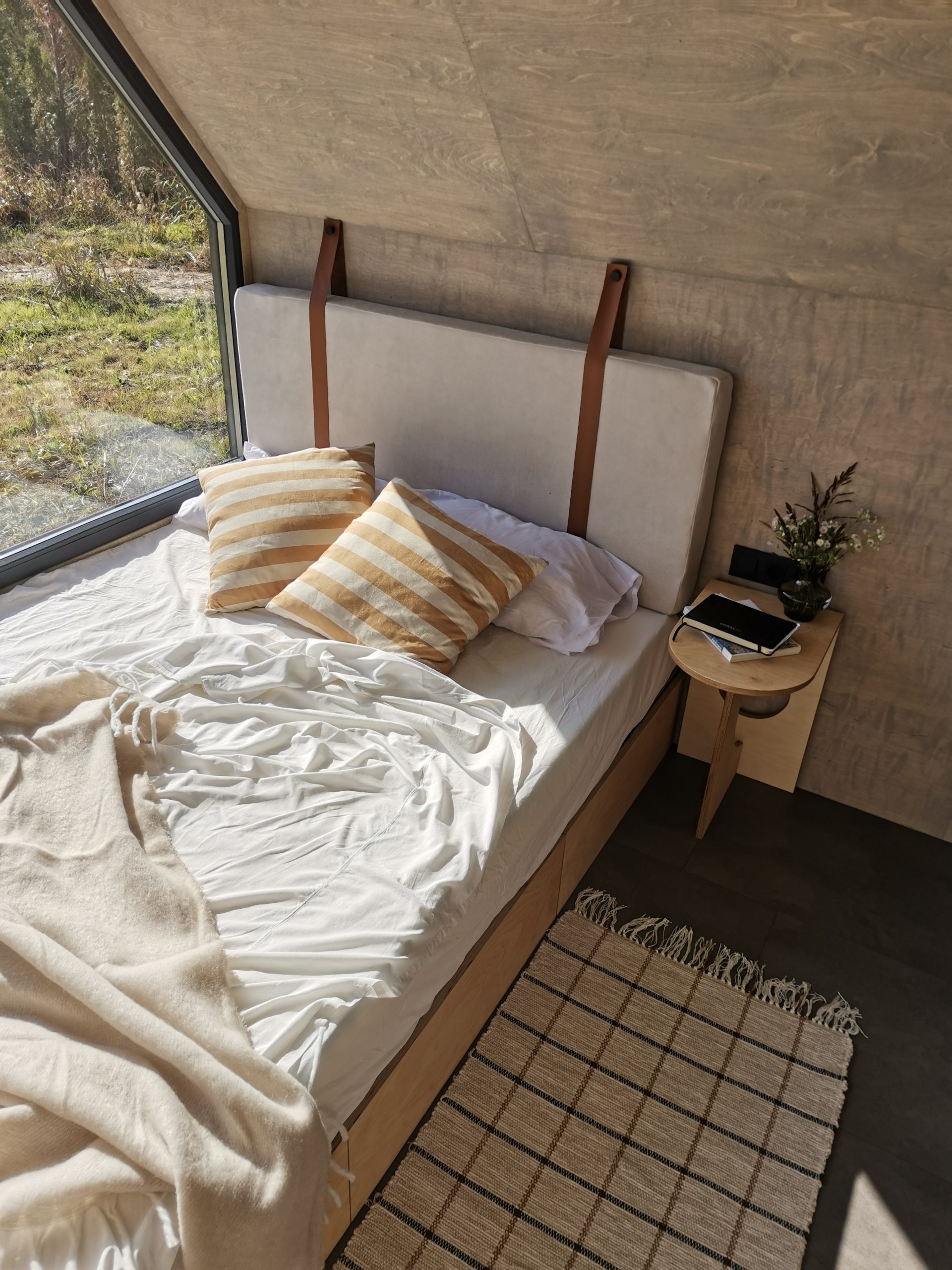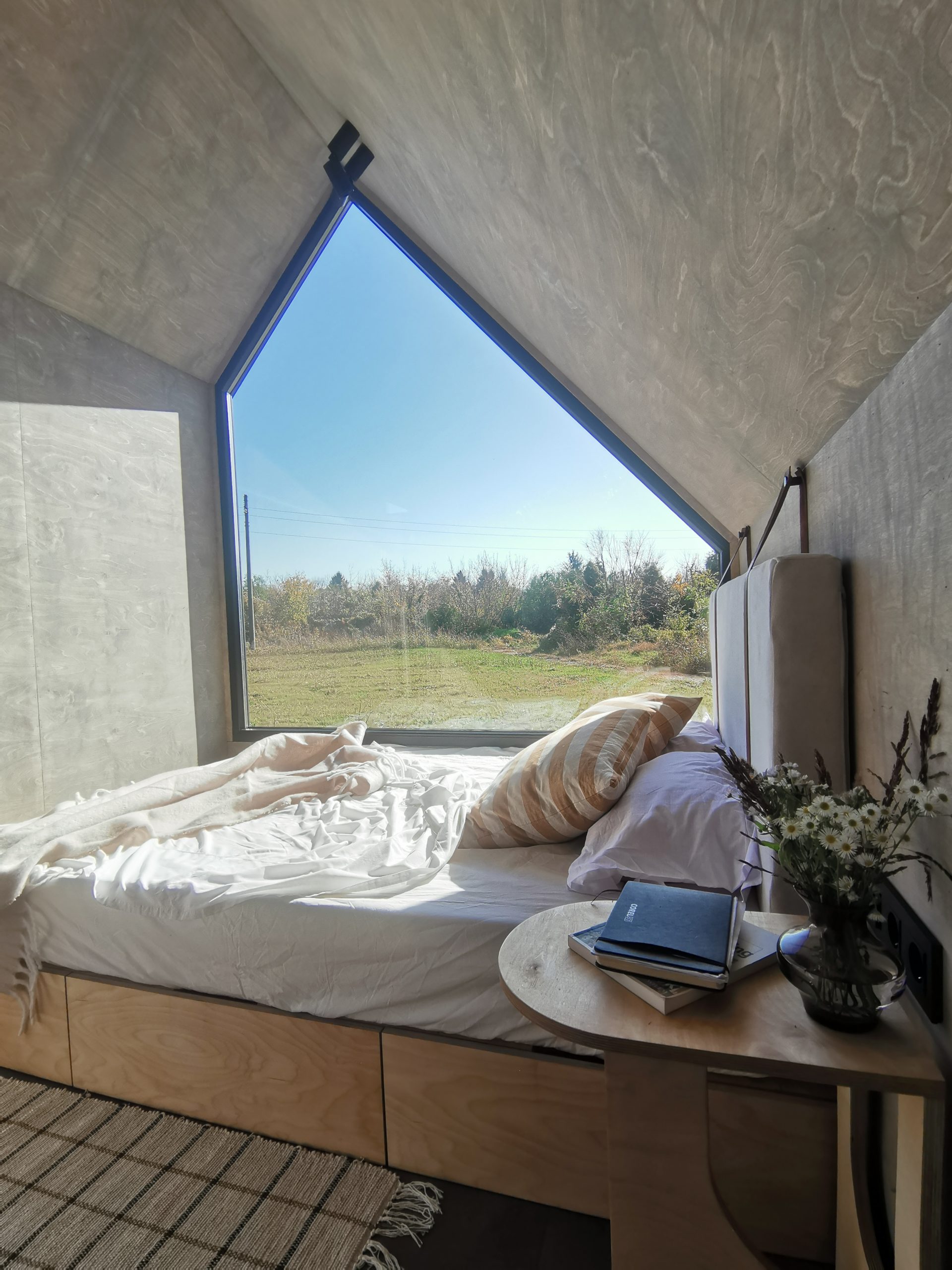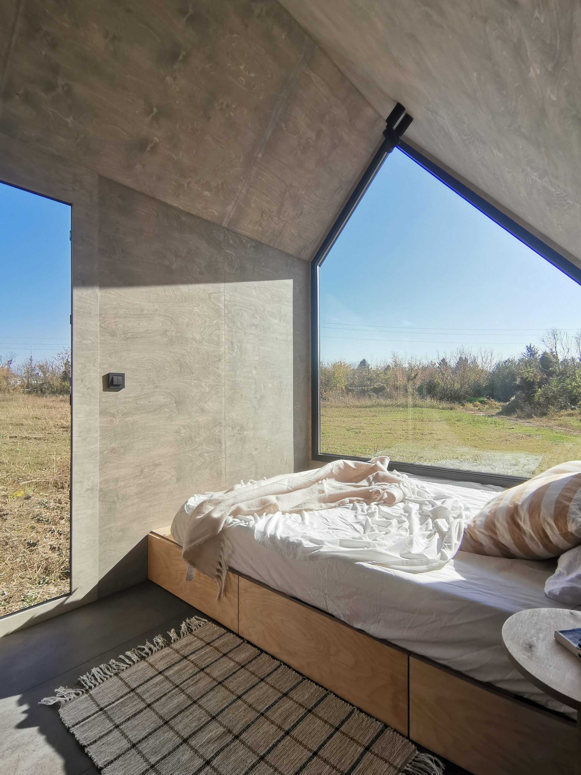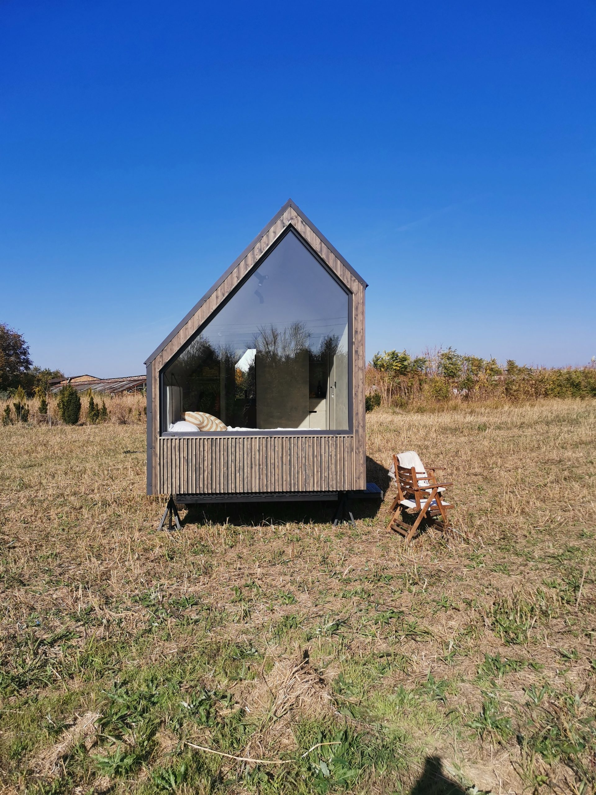 Der Mini Pod lebt von seiner markanten, fast skulpturalen Erscheinung und der asymmetrischen Stirnseite mit großem Panoramafenster. Genau daraus entsteht das eigentliche Urlaubserlebnis, morgens mit Ausblick aufzuwachen. Zugleich besitzt das Modell jene unverwechselbare Form, die Aufmerksamkeit erzeugt und Gäste dazu einlädt, ihren Aufenthalt auf Social Media zu teilen.