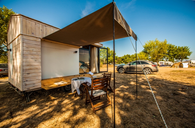 Kompakt geplant und klar im Aufbau entsteht ein kleines Refugium für Camper, die mehr suchen als einen Stellplatz. Warme Holzoberflächen, ein ruhiger Innenraum und eine private Terrasse verlagern den Aufenthalt fast automatisch nach draußen, dorthin, wo Camping seinen eigentlichen Reiz entfaltet.